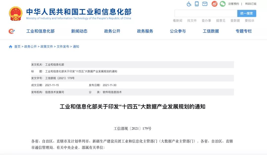 打开微信扫一扫近日,工业和信息化部发布《“十四五”大数据产业发展规划》(以下简称《规划》)。